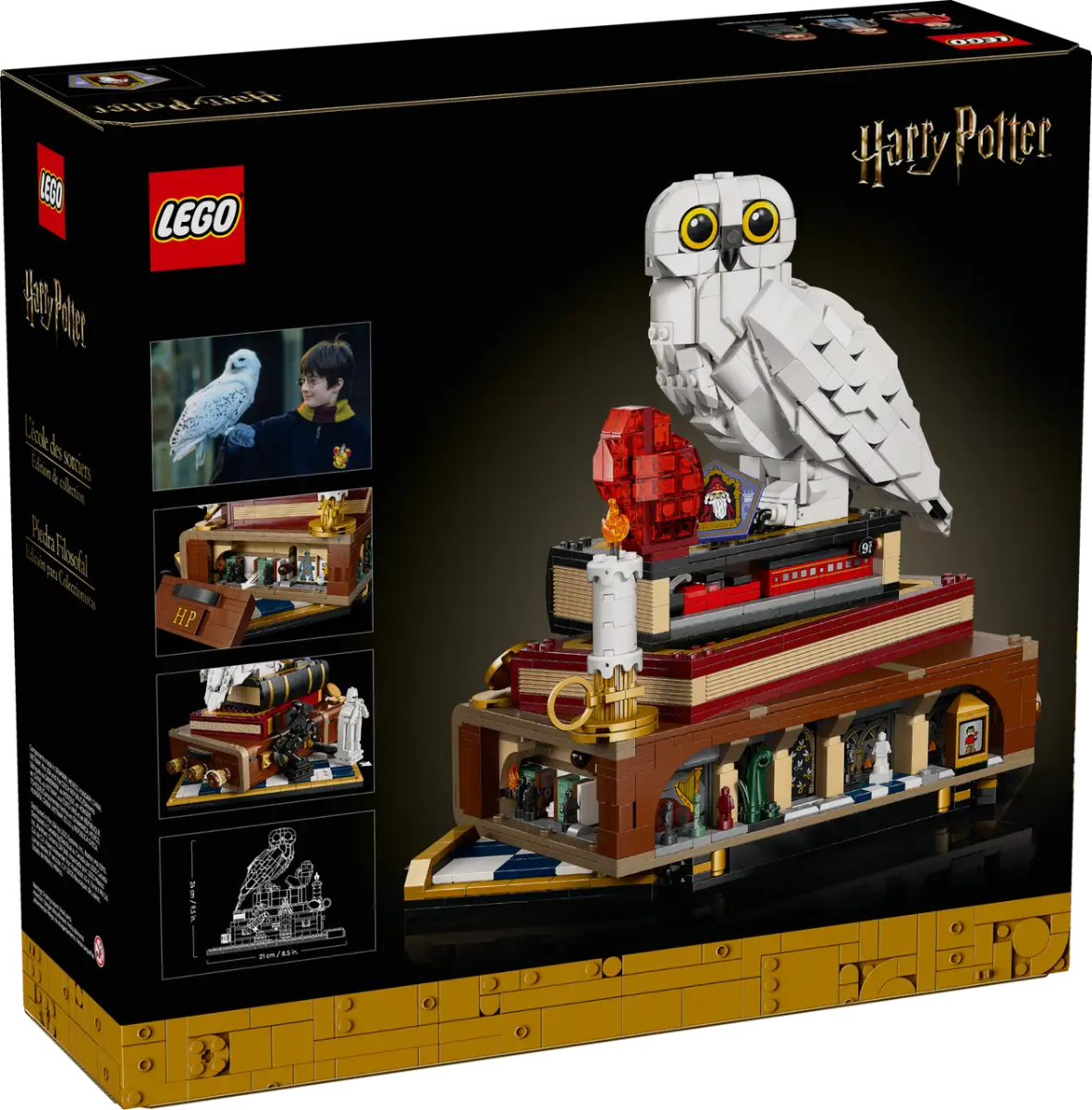 LEGO Harry Potter 25. Yıl Felsefe Taşı – Koleksiyoncu Sürümü (set numarası 76466), Hogwarts’la büyüyen ve Hedwig’in ilk mektubu getirdiği anı hâlâ hatırlayan yetişkinler için tasarlandı. 1.571 parçadan oluşan setin merkezinde, kapalı kanatlarıyla tasvir edilen bir kar baykuşu (Hedwig), Felsefe Taşı ve Harry’nin sandığı yer alıyor. Sergileme amaçlı hazırlanan bu model, yalnızca görsel bir obje olmakla kalmıyor; etkileşimli yapısıyla da dikkat çekiyor.